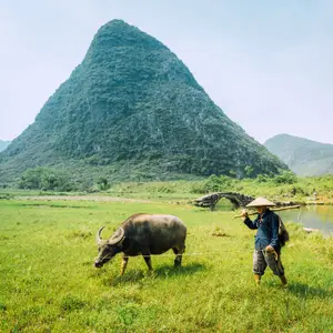 兴坪古镇位于阳朔风景的精华路段,更是20元人民币背景图案的来源地。对于未曾亲身领略过兴坪古镇风景的人而言,乘坐竹筏,在竹筏上一览“20元背景图”的风景乃人生一件幸事,毕竟能够入选人民币背景图的风景或人物寥寥无几。