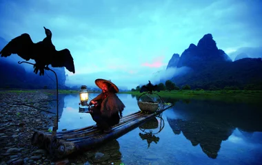 在游览完兴坪古镇这个阳朔旅游景点之后,趁此机会观赏一下漓江边的网红——渔翁大爷,也是很棒的一次体验。兴坪渔村的村民世代以捕鱼为生,经过训练的鸬鹚是他们捕鱼的得力助手,其中最精彩的捕鱼方法,叫“渔火”。然而曾经的“漓江渔火”,现今只能在表演中才有机会看到。